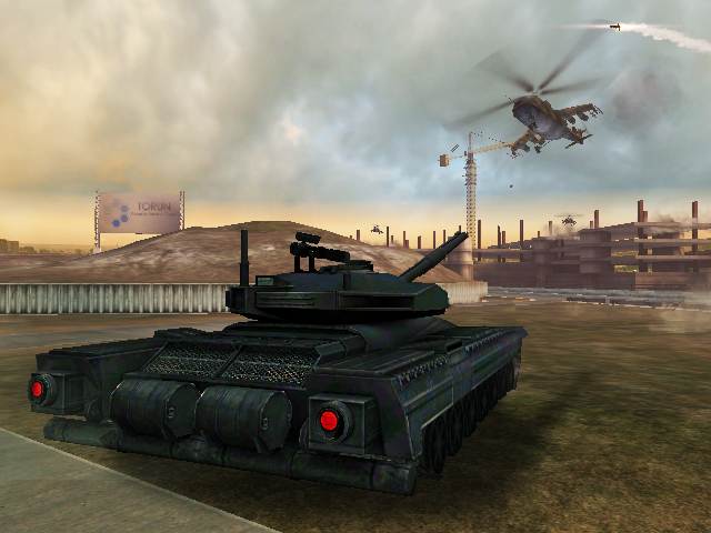 The pursuit that follows displays the impressive visuals for the game. The tank smashes everything in sight, like cars and enemy trucks. Even better, the armored vehicle blasts through cement pillars underneath buildings throughout the level. But that’s not all. Huge skyscrapers and buildings tumble down, blanketing the ground with dust and rubble. The effects are pretty stunning, and the frame rate seems to hold steady.